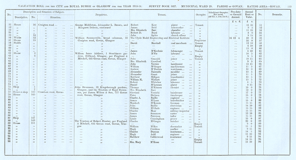 Glasgow Valuation Roll VR 1913-14, Ward 29, p113