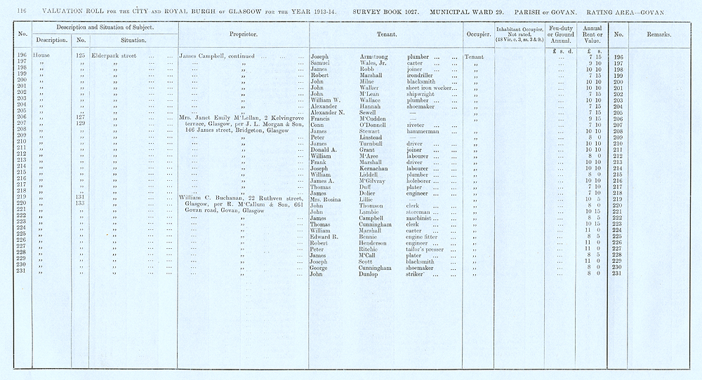 Glasgow Valuation Roll VR 1913-14, Ward 29, p116