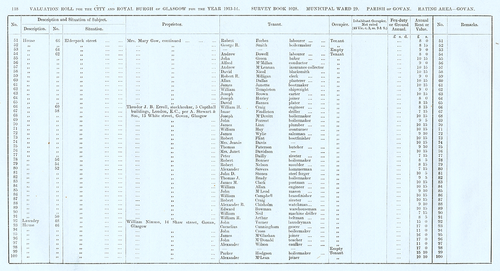 Glasgow Valuation Roll VR 1913-14, Ward 29, p118