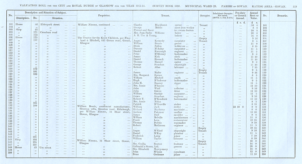 Glasgow Valuation Roll VR 1913-14, Ward 29, p119