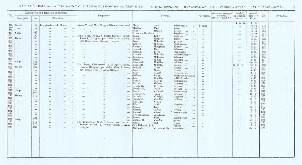 Glasgow Valuation Roll VR 1913-14, Ward 30, p007