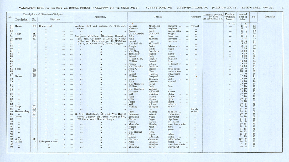 Glasgow Valuation Roll VR 1913-14, Ward 30, p035