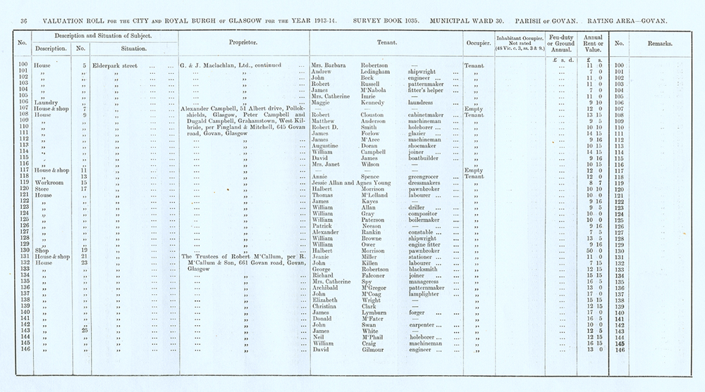 Glasgow Valuation Roll VR 1913-14, Ward 30, p036