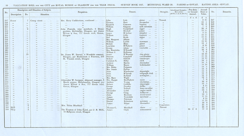 Glasgow Valuation Roll VR 1913-14, Ward 30, p050