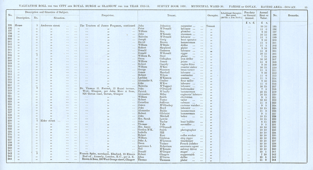 Glasgow Valuation Roll VR 1913-14, Ward 30, p055