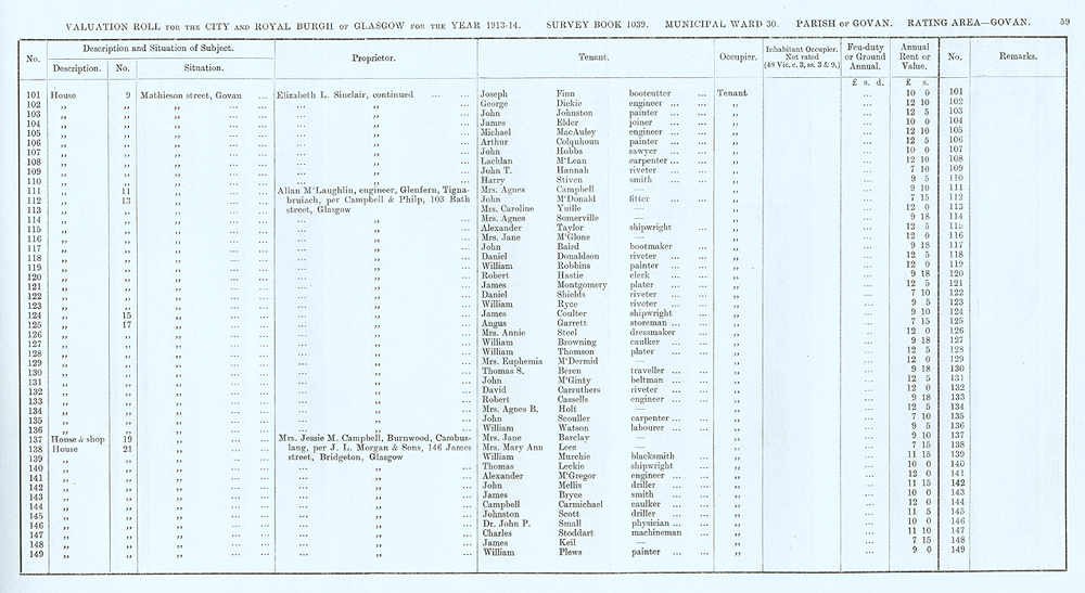 Glasgow Valuation Roll VR 1913-14, Ward 30, p059