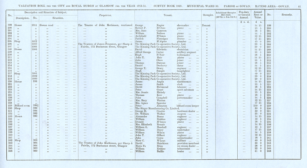 Glasgow Valuation Roll VR 1913-14, Ward 30, p061