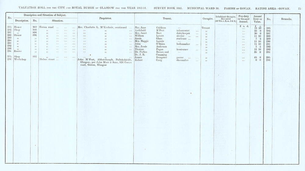 Glasgow Valuation Roll VR 1913-14, Ward 30, p075