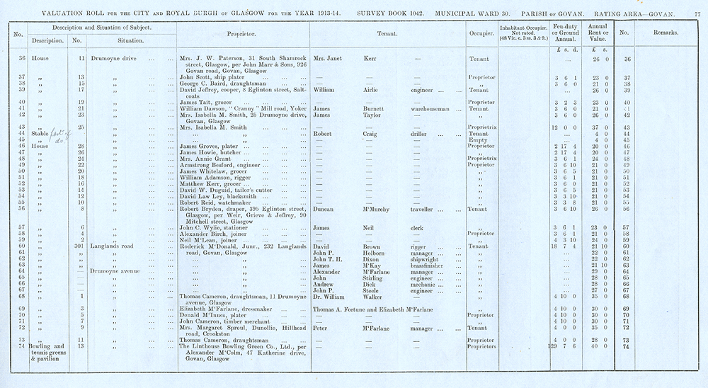Glasgow Valuation Roll VR 1913-14, Ward 30, p077