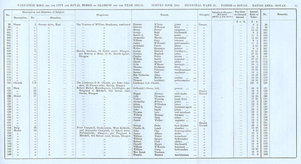 Glasgow Valuation Roll VR 1913-14, Ward 30, p085