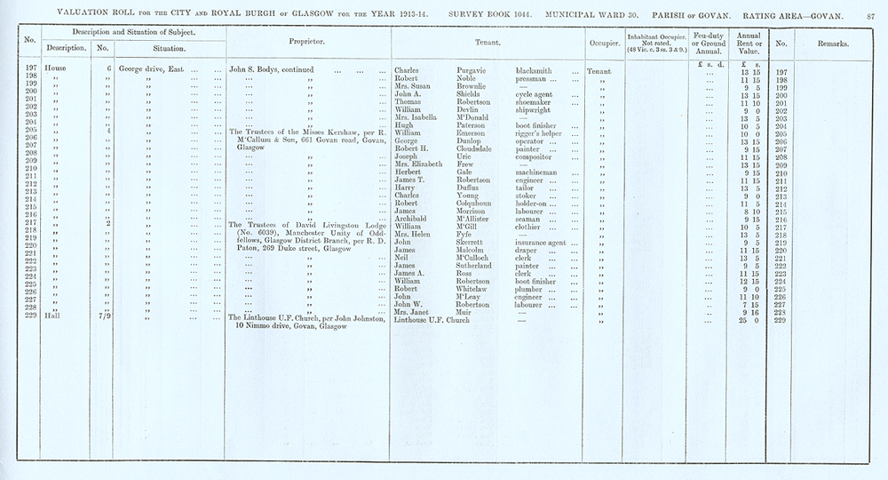 Glasgow Valuation Roll VR 1913-14, Ward 30, p087