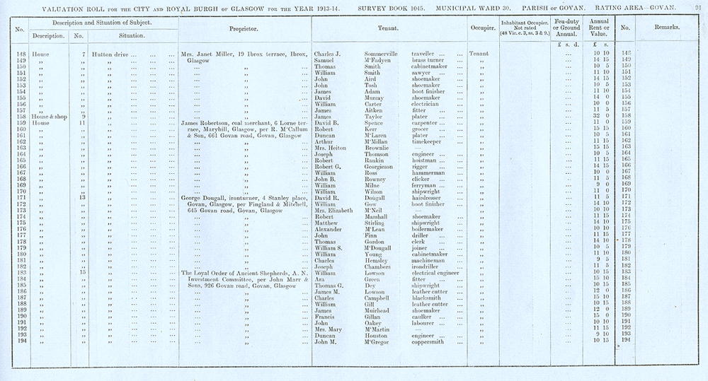 Glasgow Valuation Roll VR 1913-14, Ward 30, p091