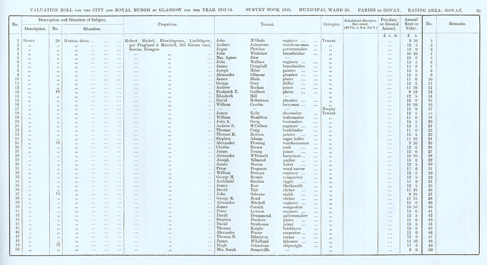 Glasgow Valuation Roll VR 1913-14, Ward 30, p093