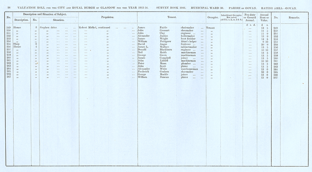 Glasgow Valuation Roll VR 1913-14, Ward 30, p098