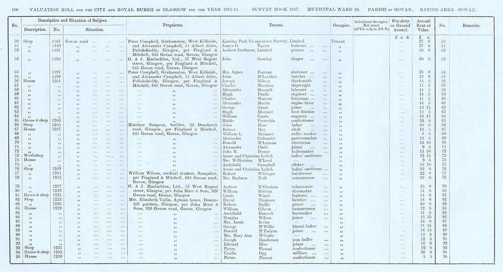 Glasgow Valuation Roll VR 1913-14, Ward 30, p100