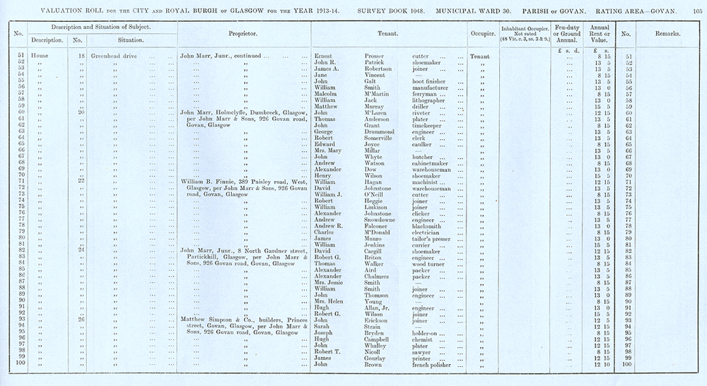 Glasgow Valuation Roll VR 1913-14, Ward 30, p105