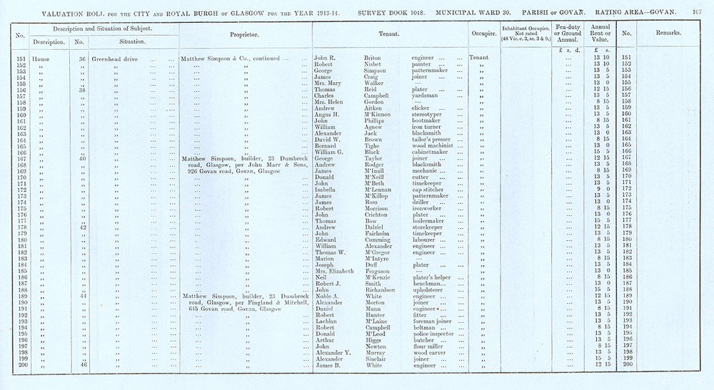 Glasgow Valuation Roll VR 1913-14, Ward 30, p107