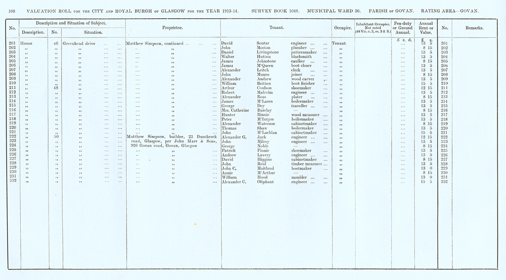 Glasgow Valuation Roll VR 1913-14, Ward 30, p108