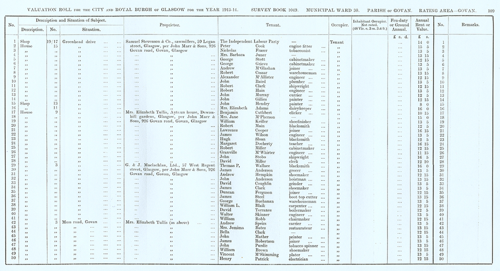 Glasgow Valuation Roll VR 1913-14, Ward 30, p109