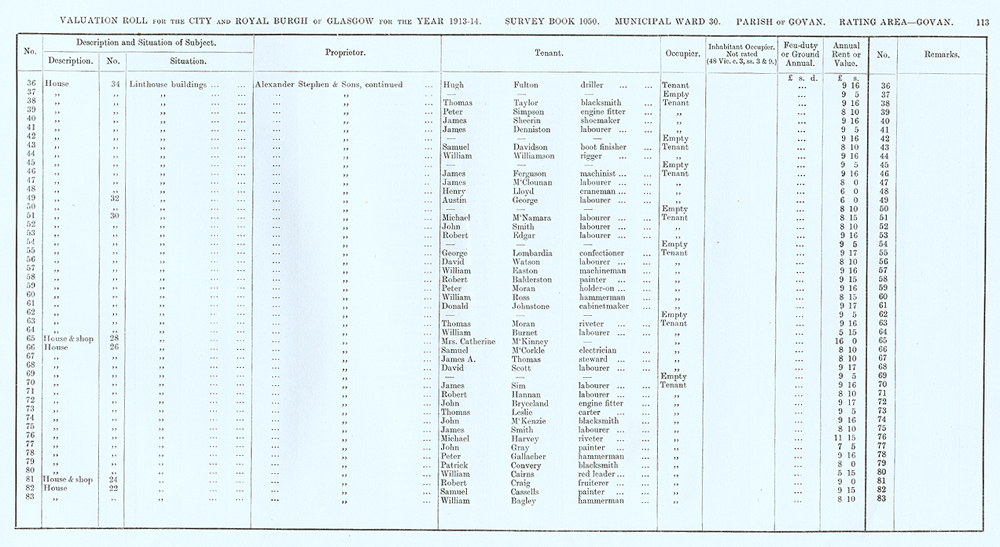 Glasgow Valuation Roll VR 1913-14, Ward 30, p113