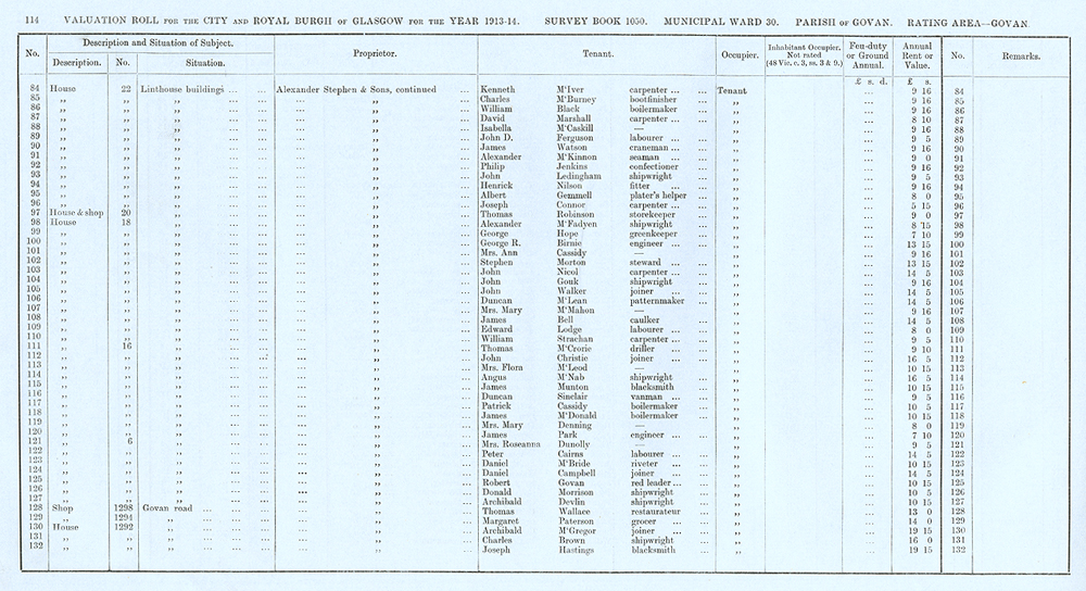 Glasgow Valuation Roll VR 1913-14, Ward 30, p114