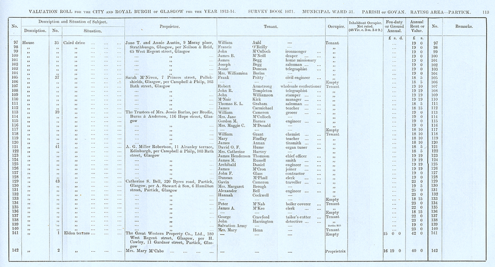 Glasgow Valuation Roll VR 1913-14, Ward 31, p113