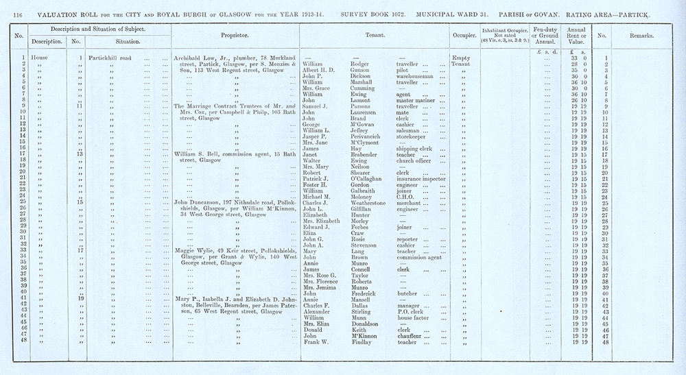Glasgow Valuation Roll VR 1913-14, Ward 31, p116