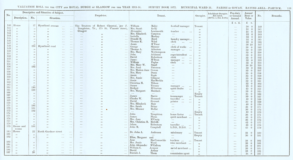 Glasgow Valuation Roll VR 1913-14, Ward 31, p119