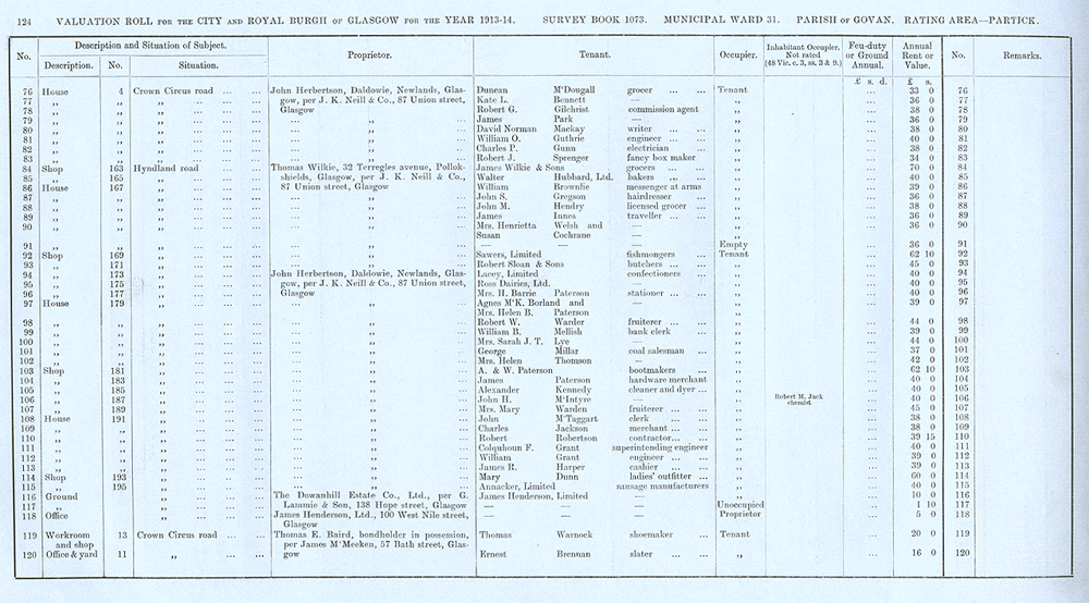 Glasgow Valuation Roll VR 1913-14, Ward 31, p124