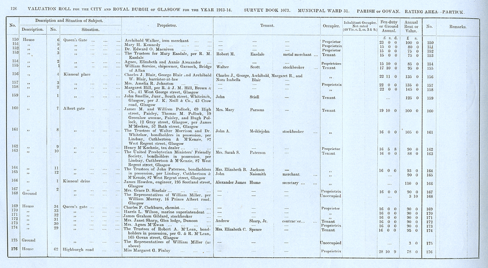 Glasgow Valuation Roll VR 1913-14, Ward 31, p126