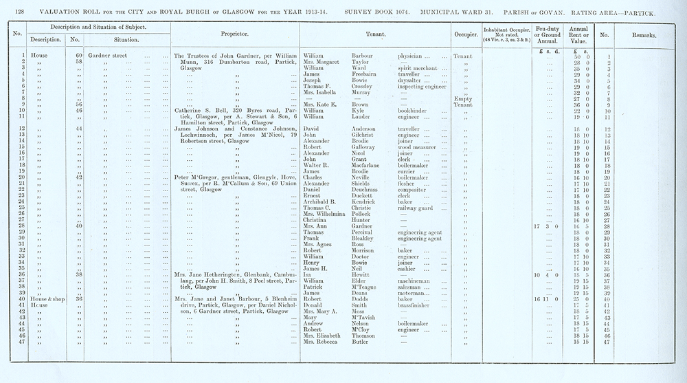 Glasgow Valuation Roll VR 1913-14, Ward 31, p128