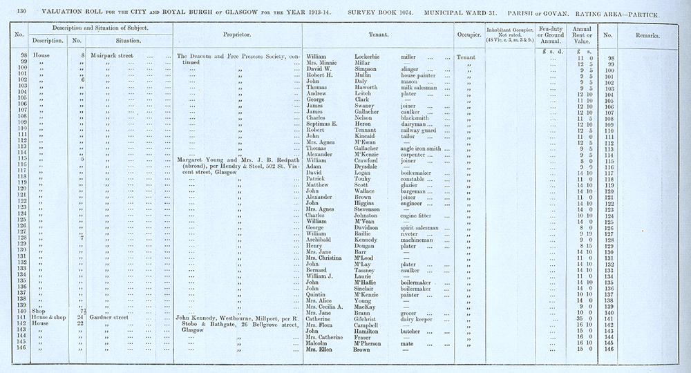 Glasgow Valuation Roll VR 1913-14, Ward 31, p130