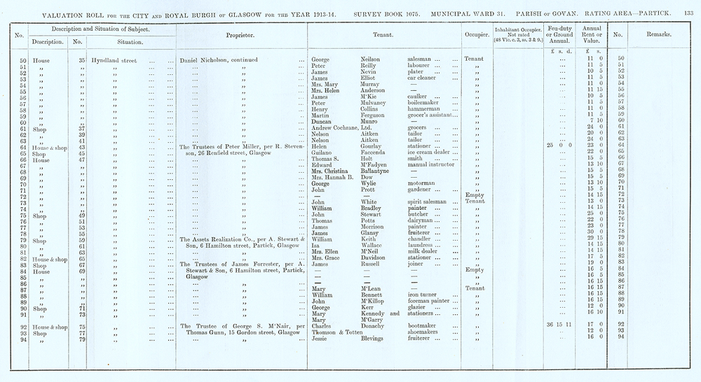 Glasgow Valuation Roll VR 1913-14, Ward 31, p133