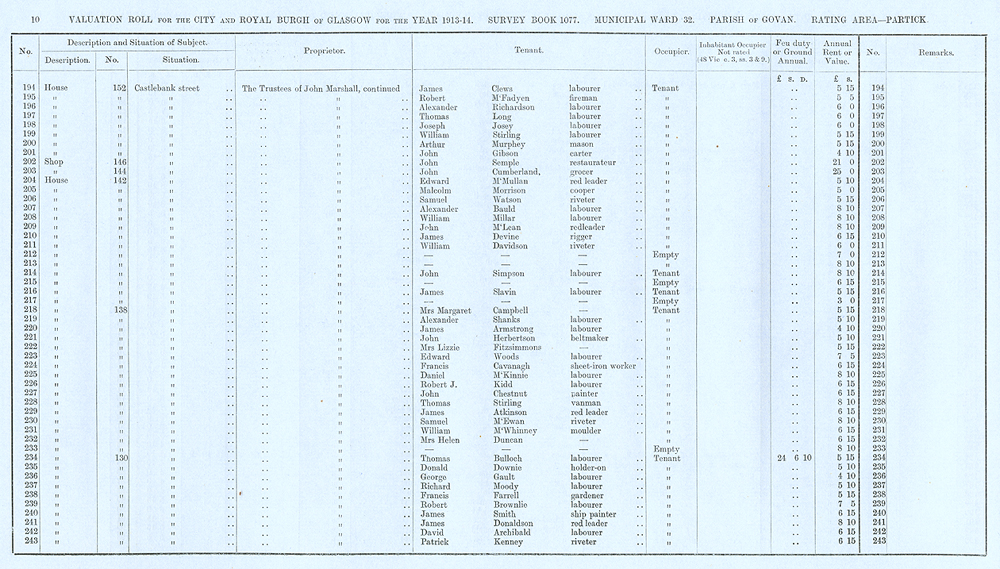 Glasgow Valuation Roll VR 1913-14, Ward 32, p010