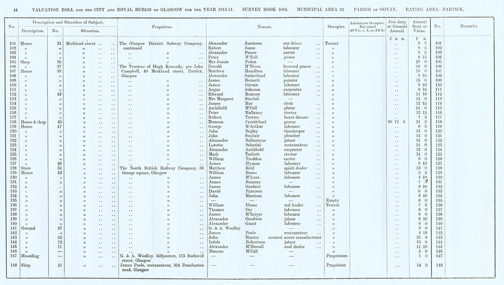 Glasgow Valuation Roll VR 1913-14, Ward 32, p044