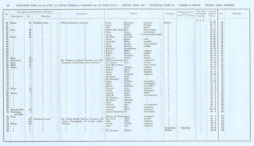 Glasgow Valuation Roll VR 1913-14, Ward 32, p050