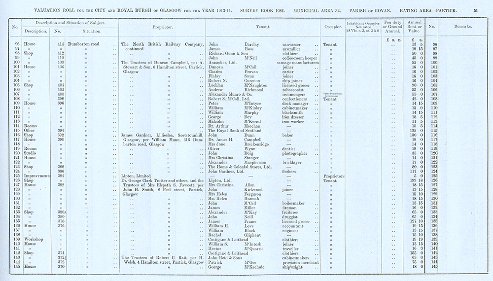 Glasgow Valuation Roll VR 1913-14, Ward 32, p051