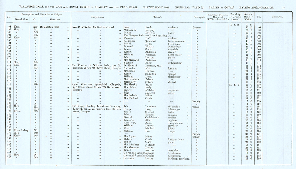 Glasgow Valuation Roll VR 1913-14, Ward 32, p077