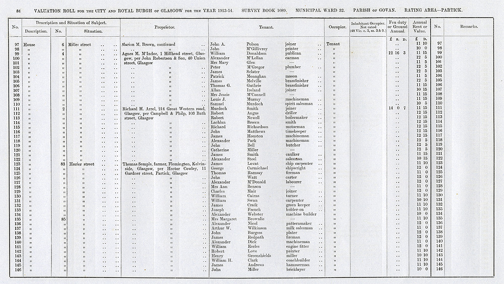 Glasgow Valuation Roll VR 1913-14, Ward 32, p084