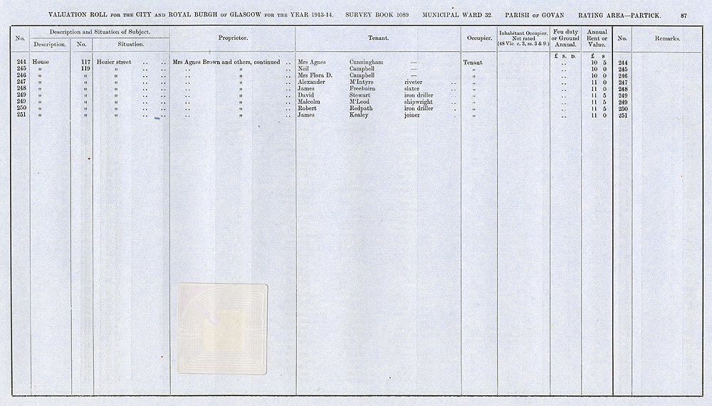 Glasgow Valuation Roll VR 1913-14, Ward 32, p087