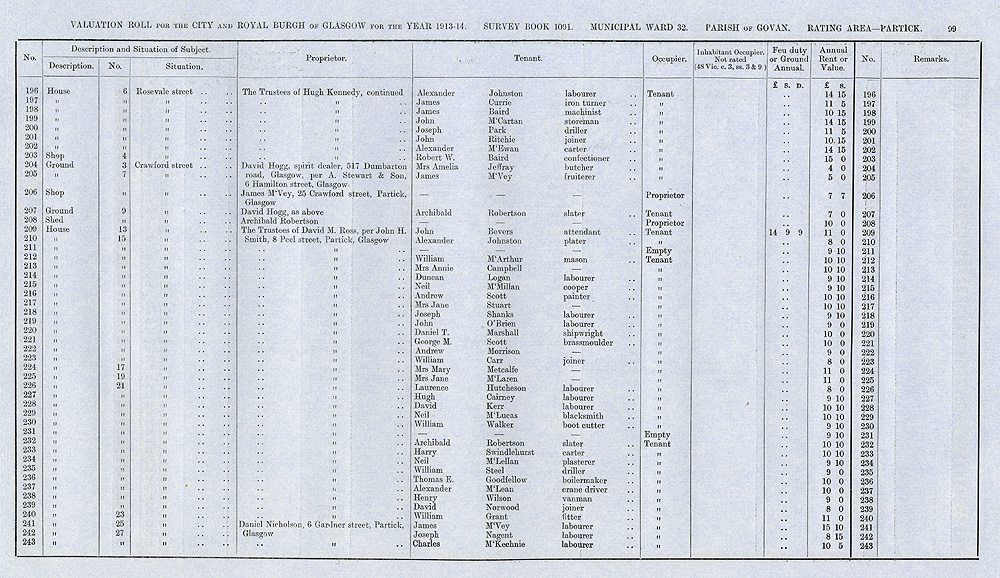 Glasgow Valuation Roll VR 1913-14, Ward 32, p099