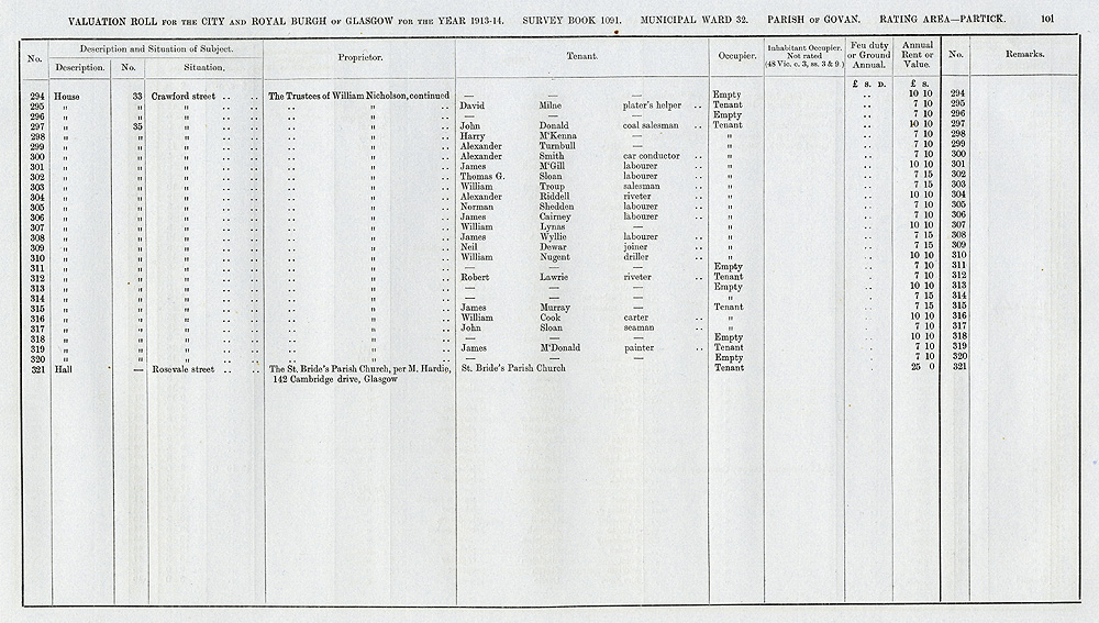 Glasgow Valuation Roll VR 1913-14, Ward 32, p101