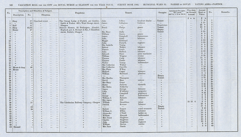 Glasgow Valuation Roll VR 1913-14, Ward 32, p102