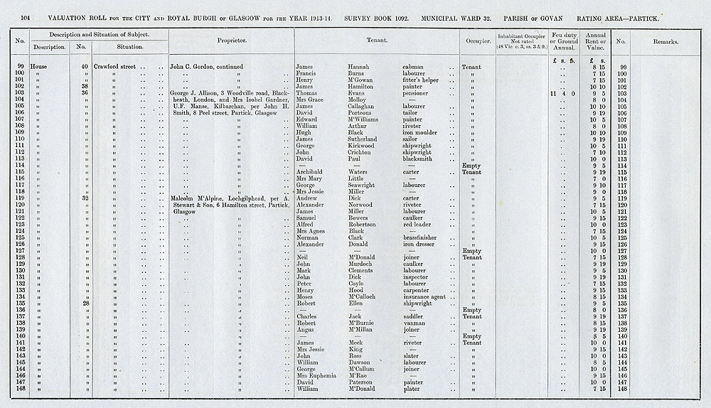 Glasgow Valuation Roll VR 1913-14, Ward 32, p104