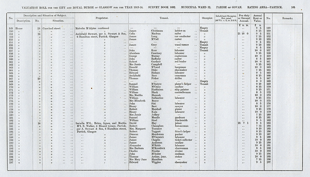Glasgow Valuation Roll VR 1913-14, Ward 32, p105