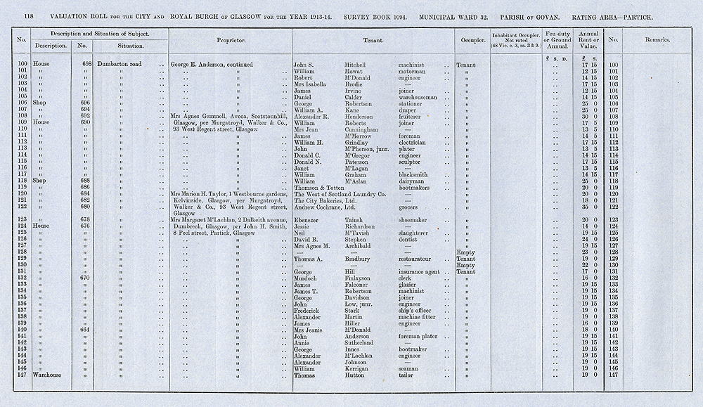 Glasgow Valuation Roll VR 1913-14, Ward 32, p118