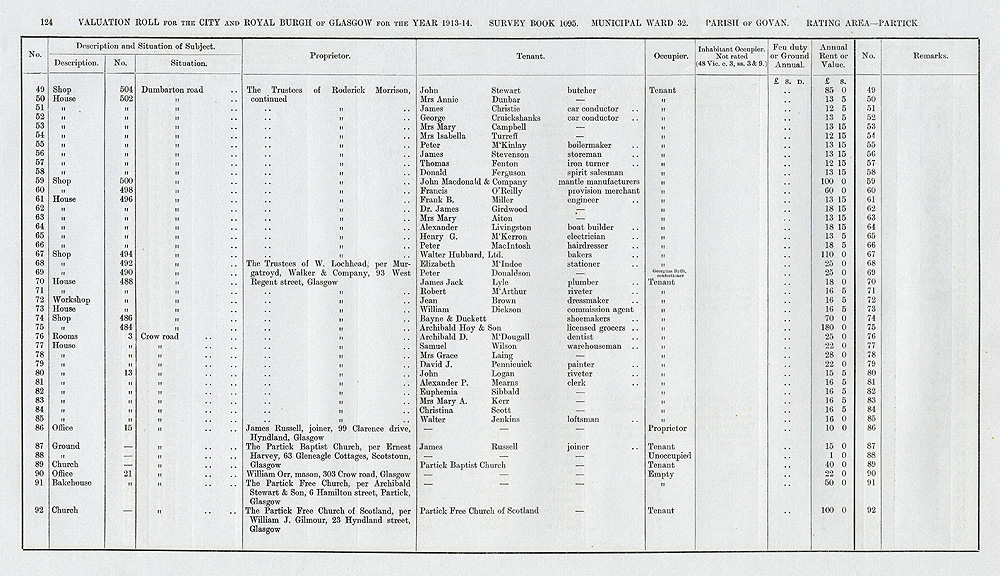 Glasgow Valuation Roll VR 1913-14, Ward 32, p124