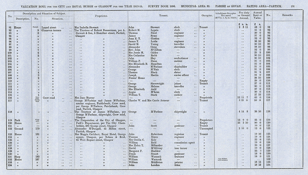 Glasgow Valuation Roll VR 1913-14, Ward 32, p131