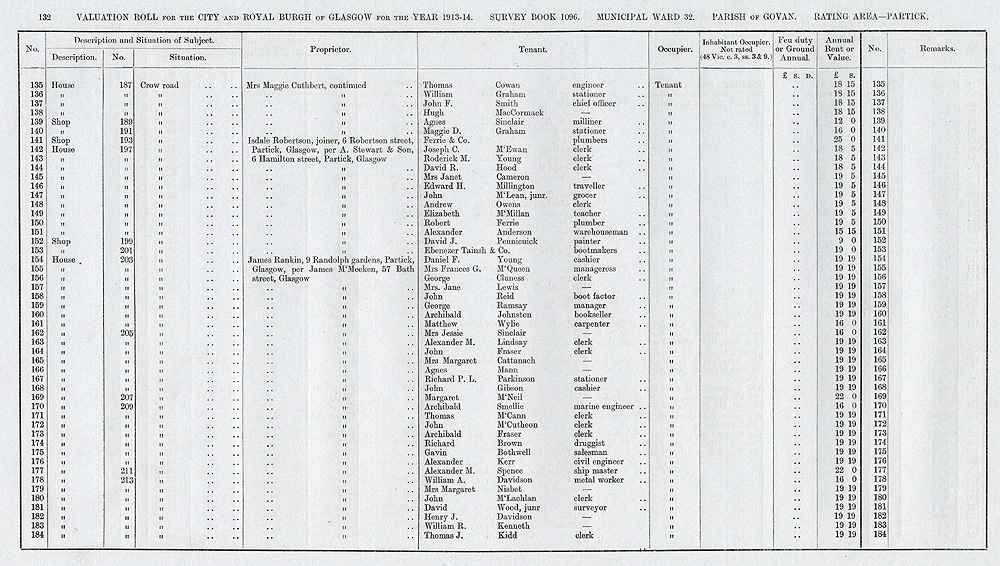 Glasgow Valuation Roll VR 1913-14, Ward 32, p132