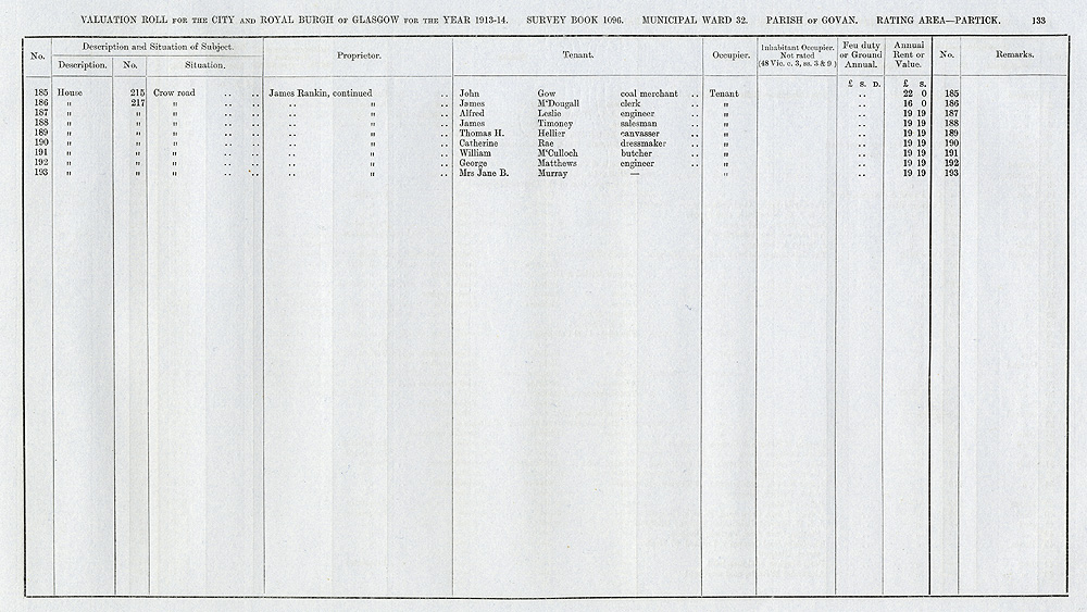 Glasgow Valuation Roll VR 1913-14, Ward 32, p133
